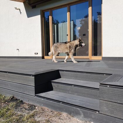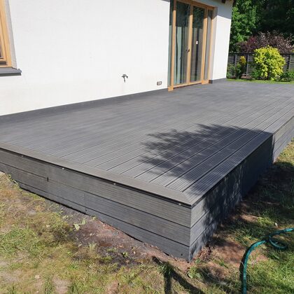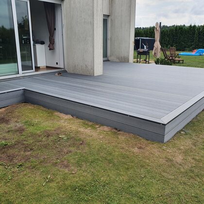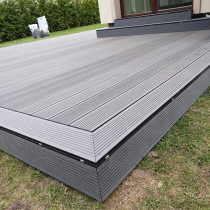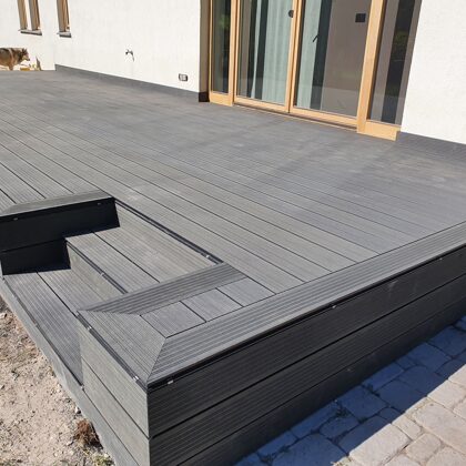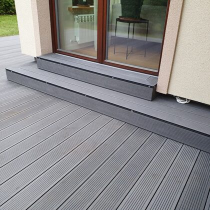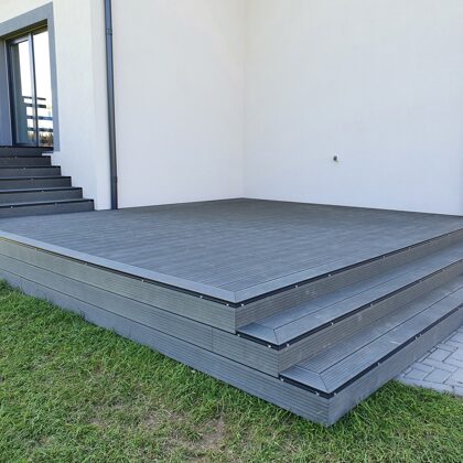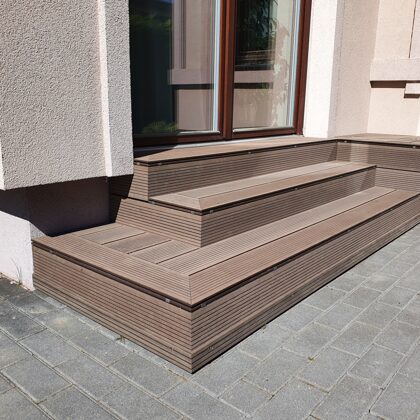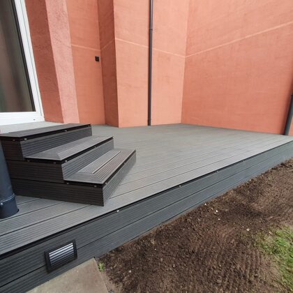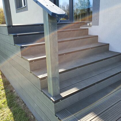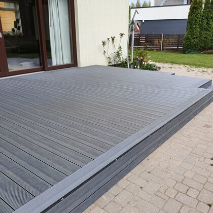 Kompozītmateriāla terases dēļu sastāvā ir 60% sasmalcināta koksne, 30% polietilēns vai PVC, 10% krāsvielas un saistvielas. Šāda tipa dēļiem vav nepieciešama apkope, kā arī piemīt noturība pret netīrumiem un mehāniskiem bojājumiem. Polimēra materiāls izmaksu ziņā ir dārgāks par dabīgā koka dēļiem, bet ilgtermiņā šāds dēļu risinājums atmaksājas uz apkalpošanas rēķina.